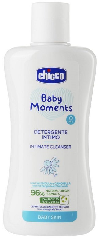 Detergente intimo. Formula 96% di origine naturale, arricchita con estratti di calendula, emolliente, e camomilla, lenitiva. Testato per il rispetto dell’equilibrio della mucosa intima.